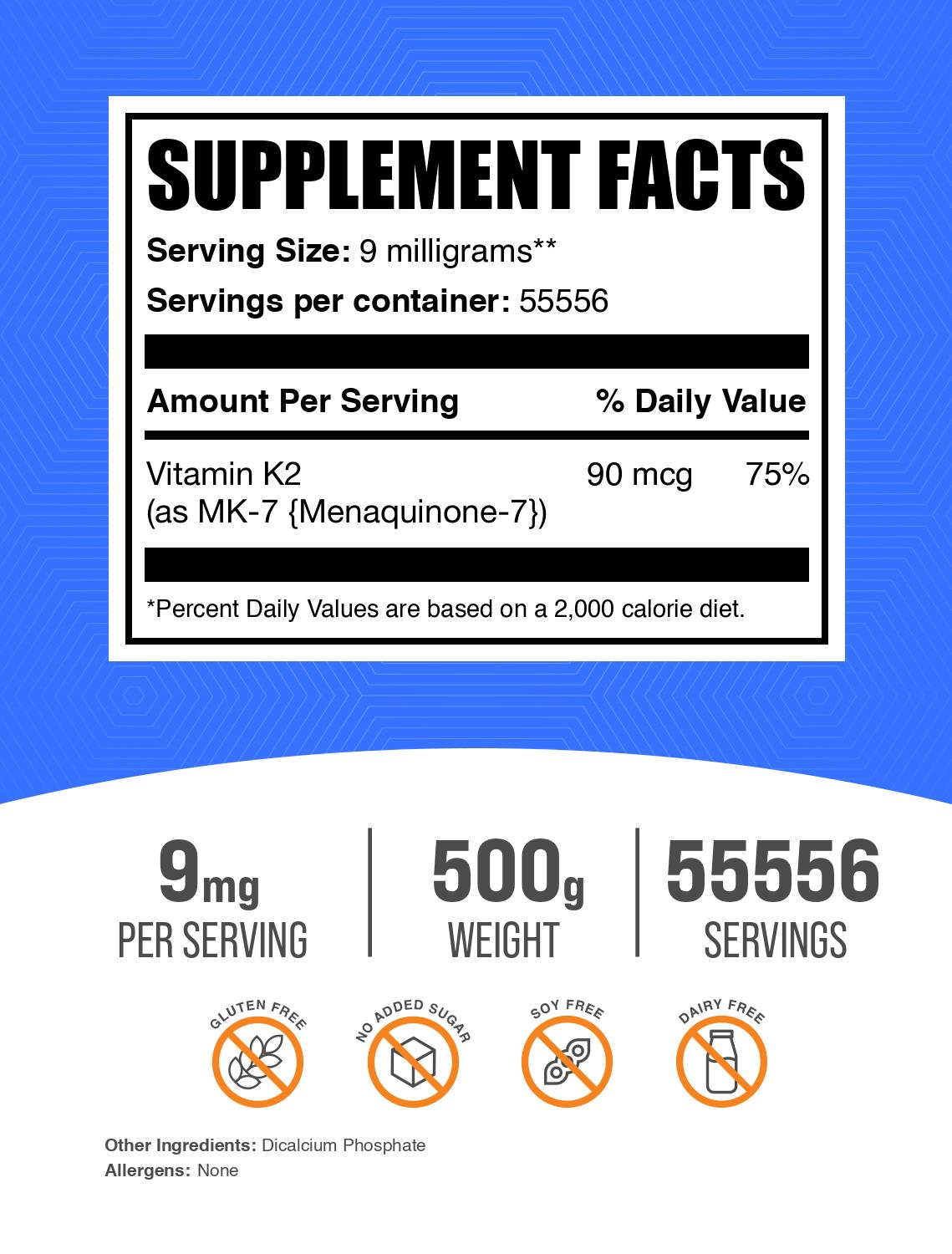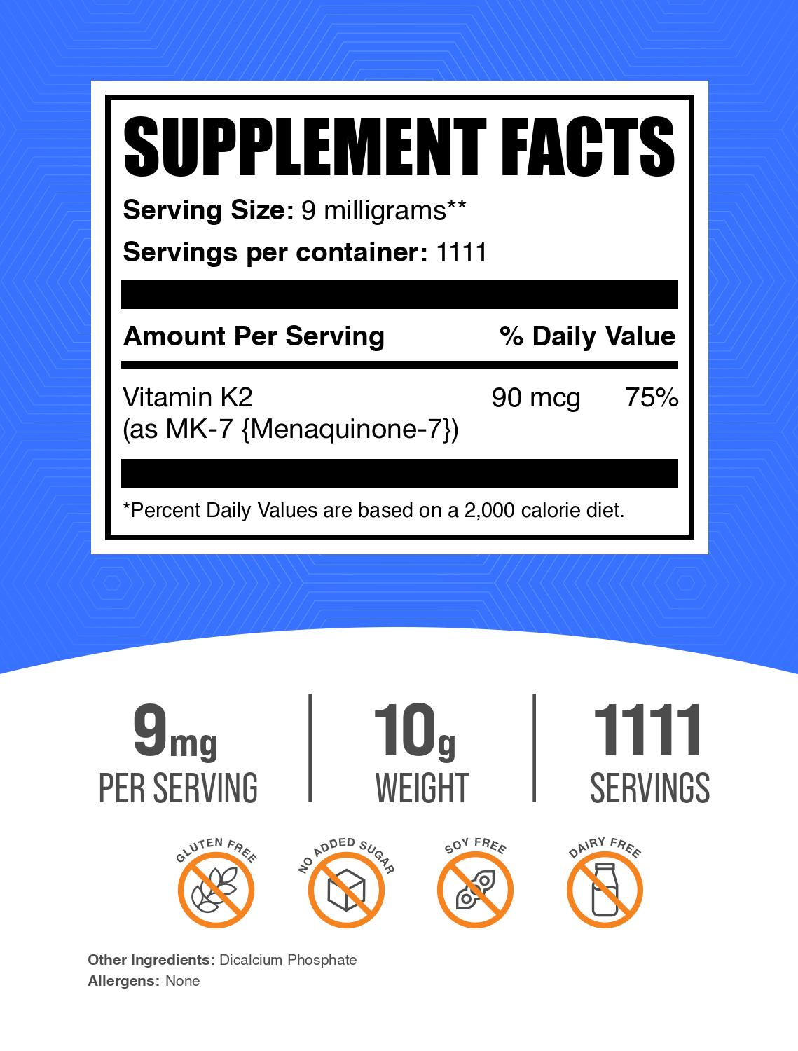 สนับสนุนสุขภาพหัวใจ: รูปแบบของวิตามินเคนี้อาจช่วยส่งเสริมสุขภาพหัวใจและหลอดเลือดโดยช่วยกระตุ้นการเผาผลาญแคลเซียมอย่างมีประสิทธิภาพ มักเป็นส่วนหนึ่งของกิจวัตรดูแลสุขภาพหัวใจ