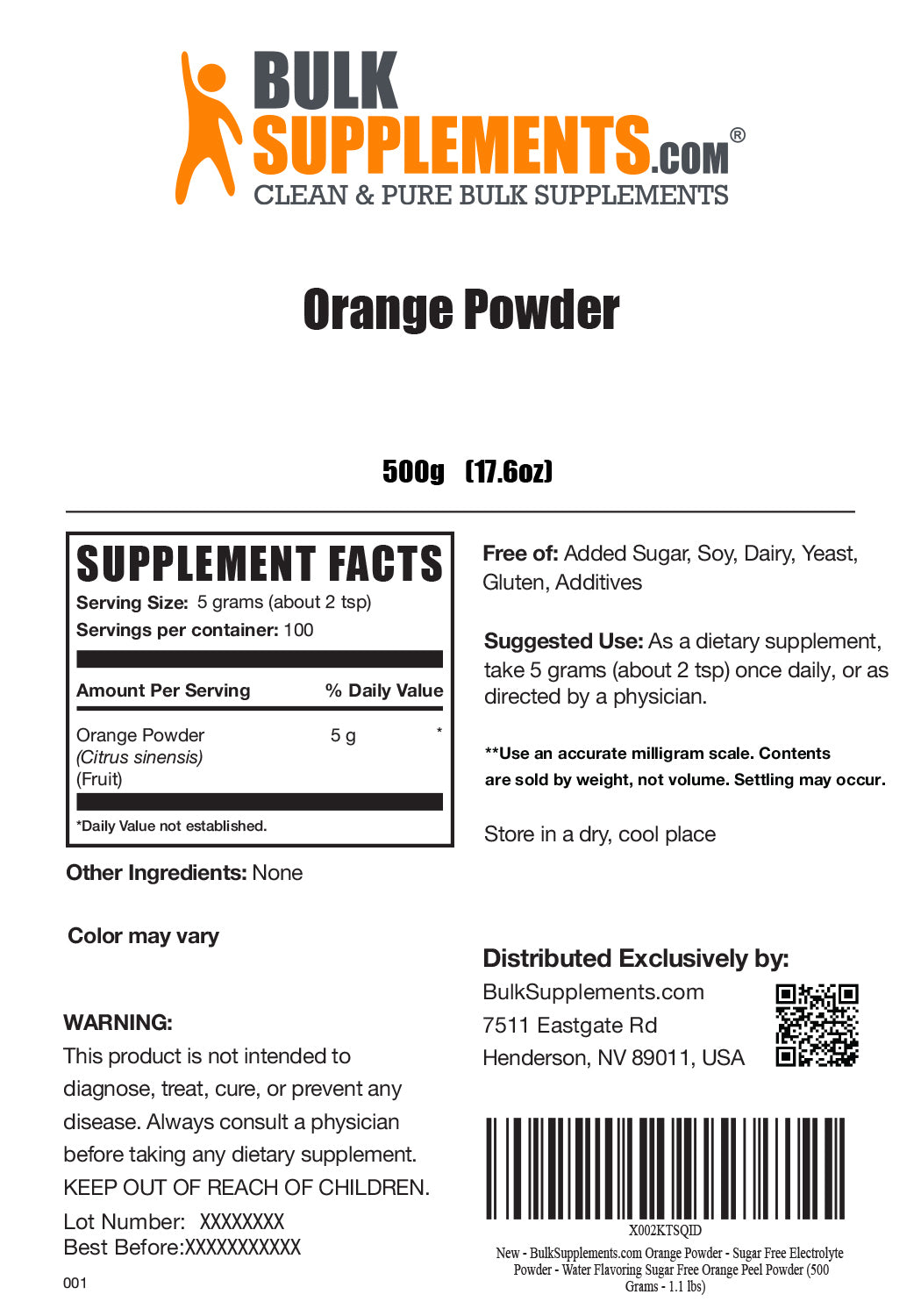 Té o infusiones : Mezcle el polvo de naranja en agua caliente para obtener té o infusiones con sabor a naranja.