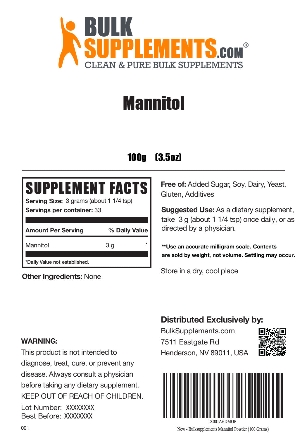 Suggested Use: As a dietary supplement, take 1 tsp (about 3g) with 8-12 oz of water or as directed by your healthcare professional.