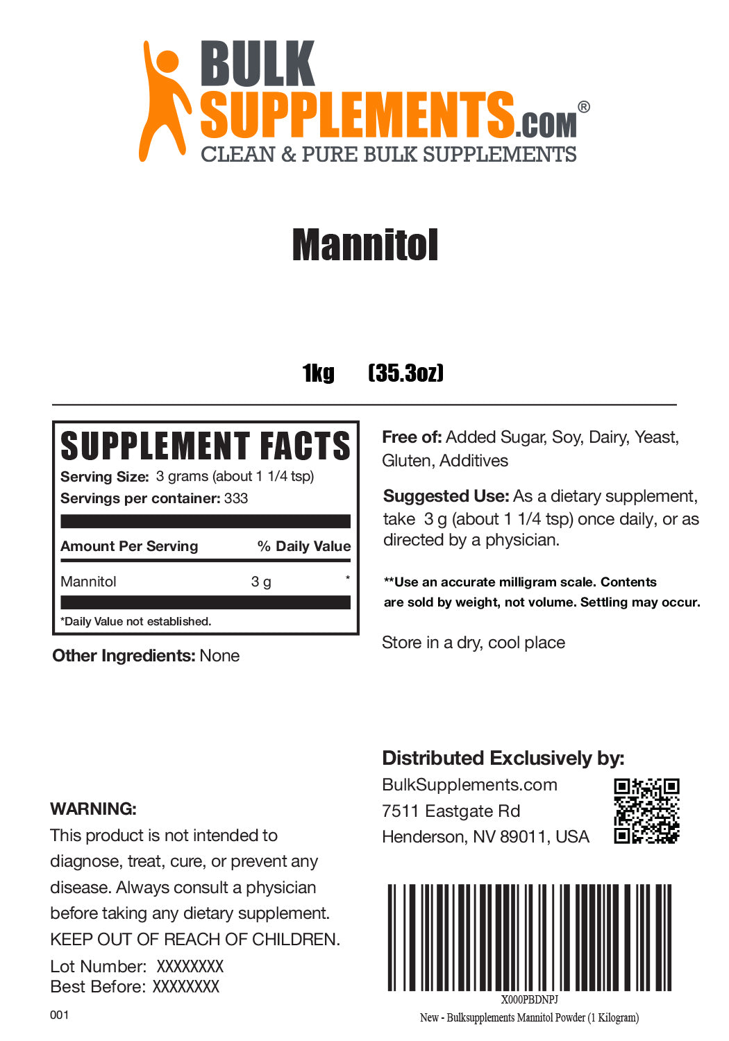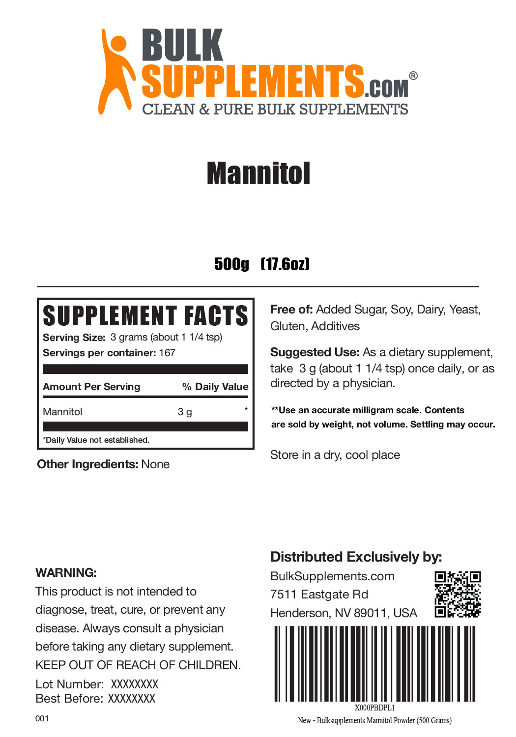 Artificial Sweetener: Mannitol is a low-calorie sweetener commonly used as a sugar alternative in foods and supplements. It provides a mild, clean sweetness without significantly impacting caloric intake.